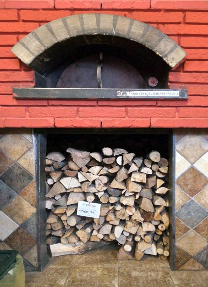 La legna per pizzerie viene trasportata dentro a cassette da 60 litri per poi essere accatastata sotto al forno o nella legnaia.